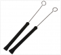 The wire ends are coated to prevent them from rusting. Coating additionally helps reduce the risk of tearing your drum heads. The brushes measure 34 cm in overall length. The wires measure 14 cm while the handle measure 18 cm. The smooth rubber handle retracts to protect the bristles from bending.